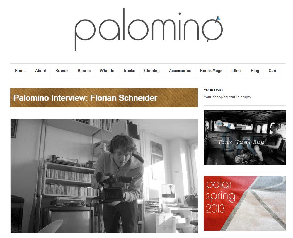 PALOMINO – INTERVIEW (U.K.) Nick at PALOMINO SKATESHOP made a little Q&A with me about PUSHED and future works. Check out the full article at http://www.thepalomino.com/florian/
